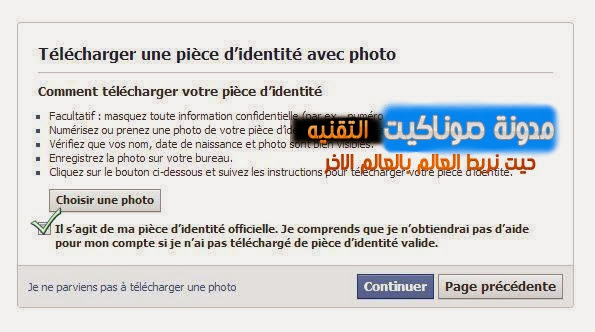 ثم تضغط على choisir une Photo ونختار احد الوثائق المتوفره لدينا و نضع العلم على الخانه اسفله كما هو موضح في الصوره