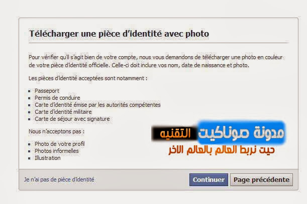 تظهر لنا رساله جديده تطلب من ان يكون بحوزتك احد هده الوثائق البطاقه الوطنية او جواز السفر (باسبور)